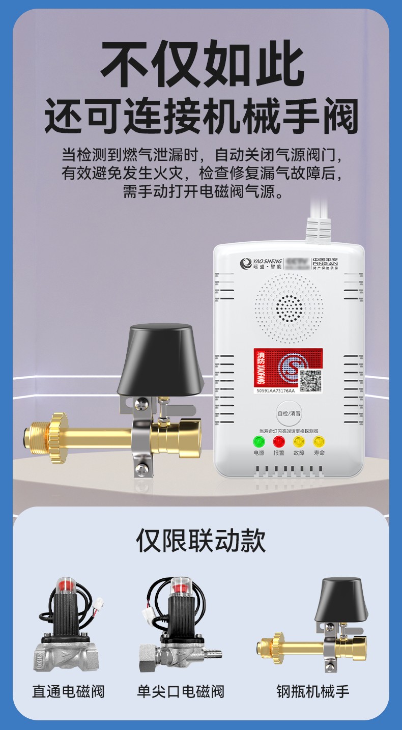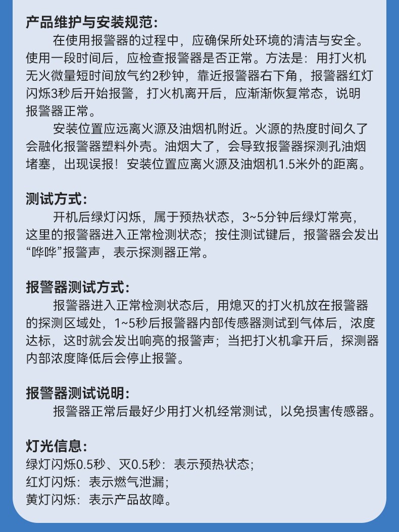 燃氣報警器 (型號PA-219) 產品規格 功能特點 資料下載 燃氣報警器 (型號PA-219)1、多種氣體檢測2、90分貝高音報警3、探測靈敏4、故障質檢5、聯動切斷燃氣6、中國平安保險7. 可連接機械手閥適用場景:適用于家庭廚房、酒店廚房、食堂、商場等場所