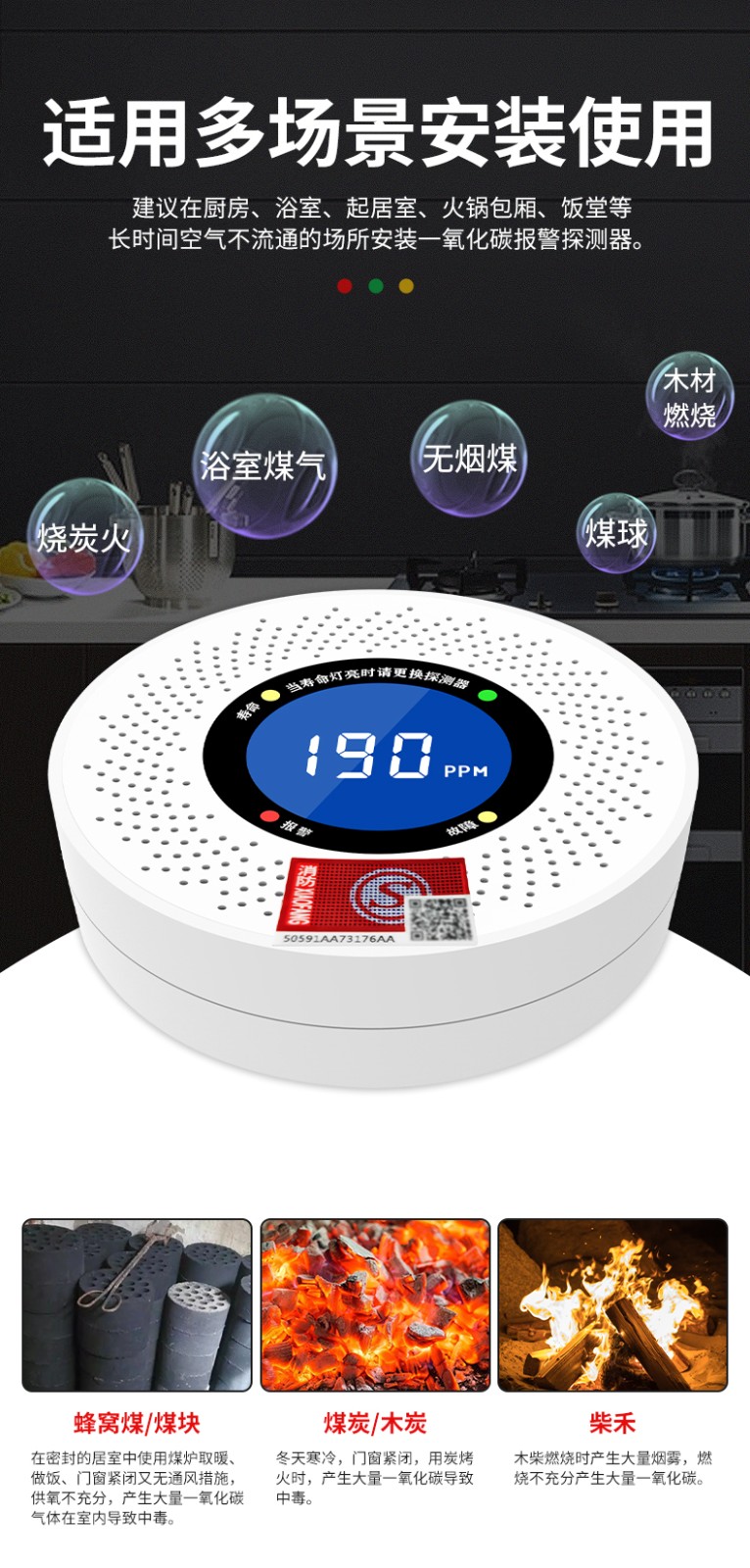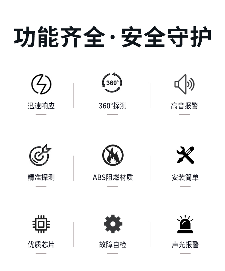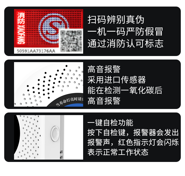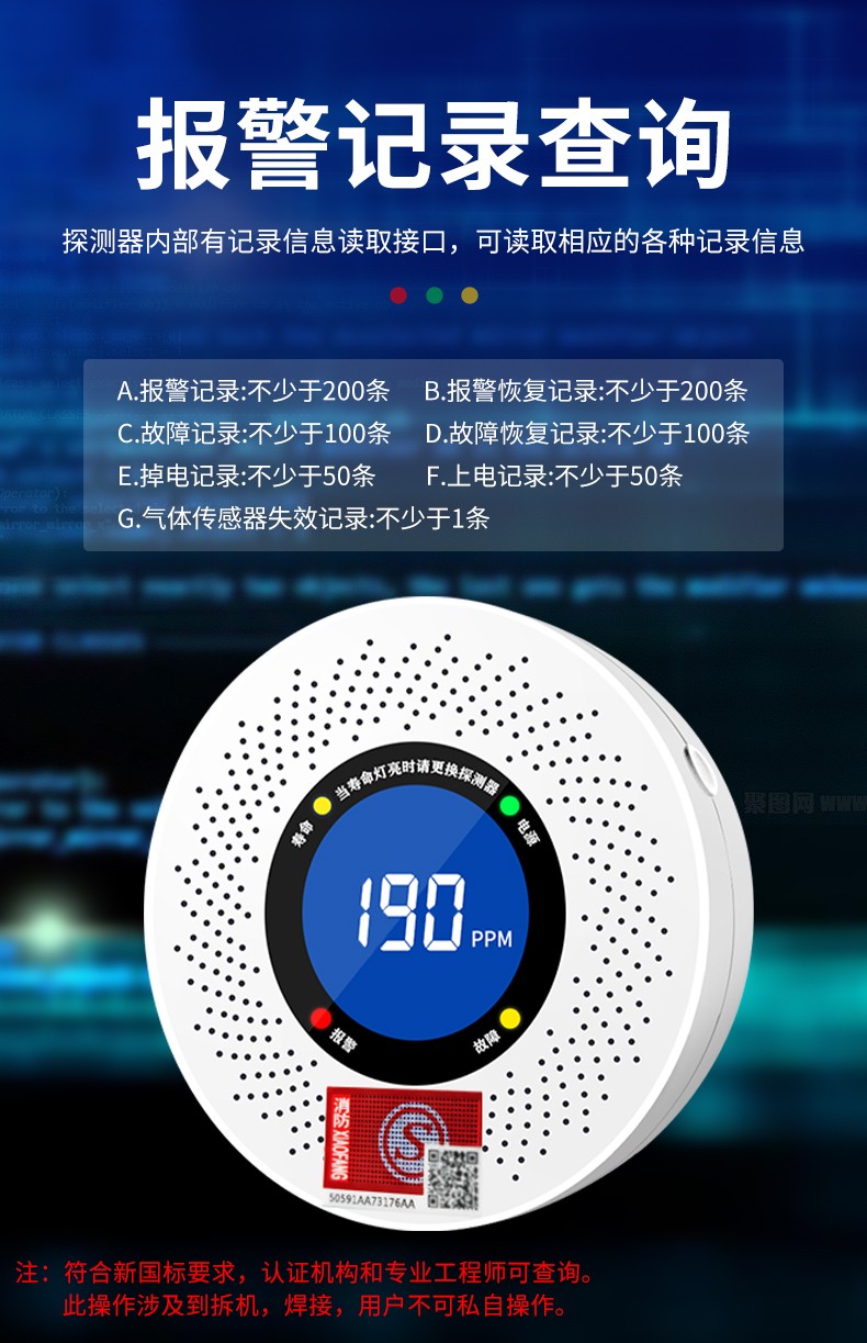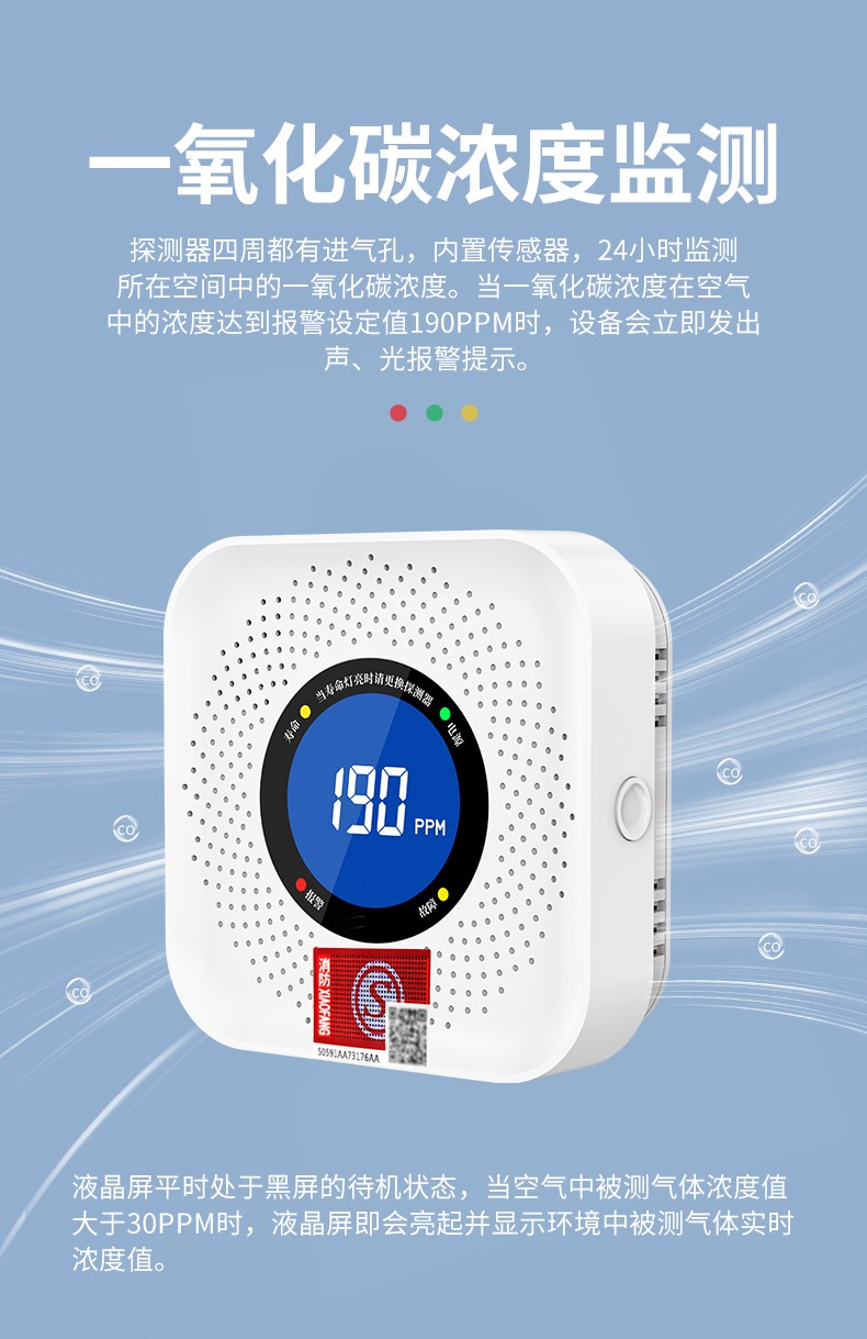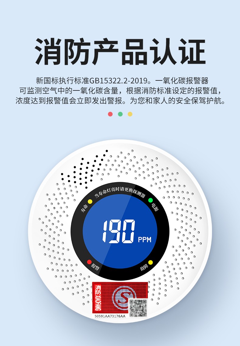 一氧化碳報警器(型號PA-007) 產品規格 功能特點 資料下載 一氧化碳報警器(型號PA-007)1.探測氣體:一氧化碳2.報警方式:高音報警、聲光報警3.材質:ABS阻燃材質4.產品保險:1000萬承險適用場景:適用于廚房、浴室、起居室、火鍋包廂、飯堂等長時間空氣不流通的場所安裝一氧化碳報警探測器