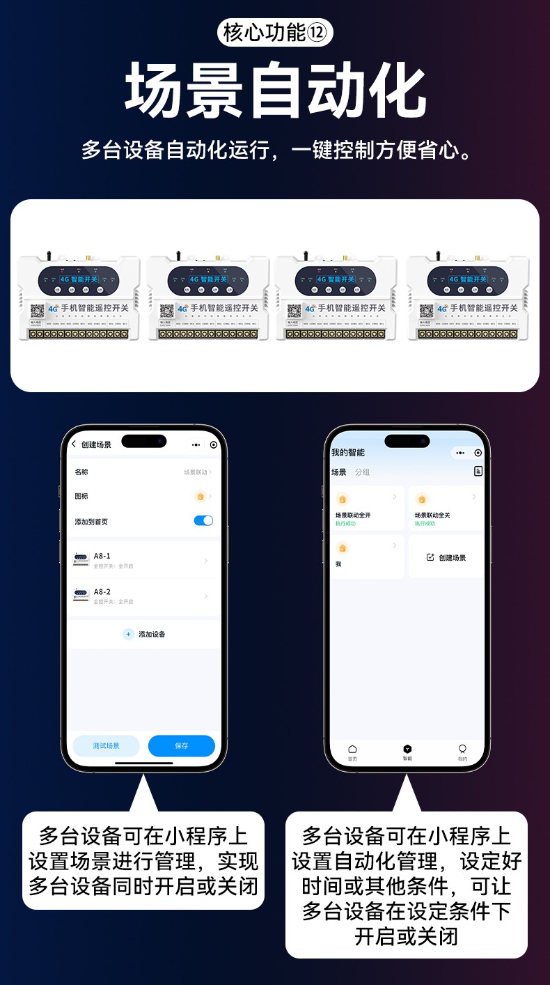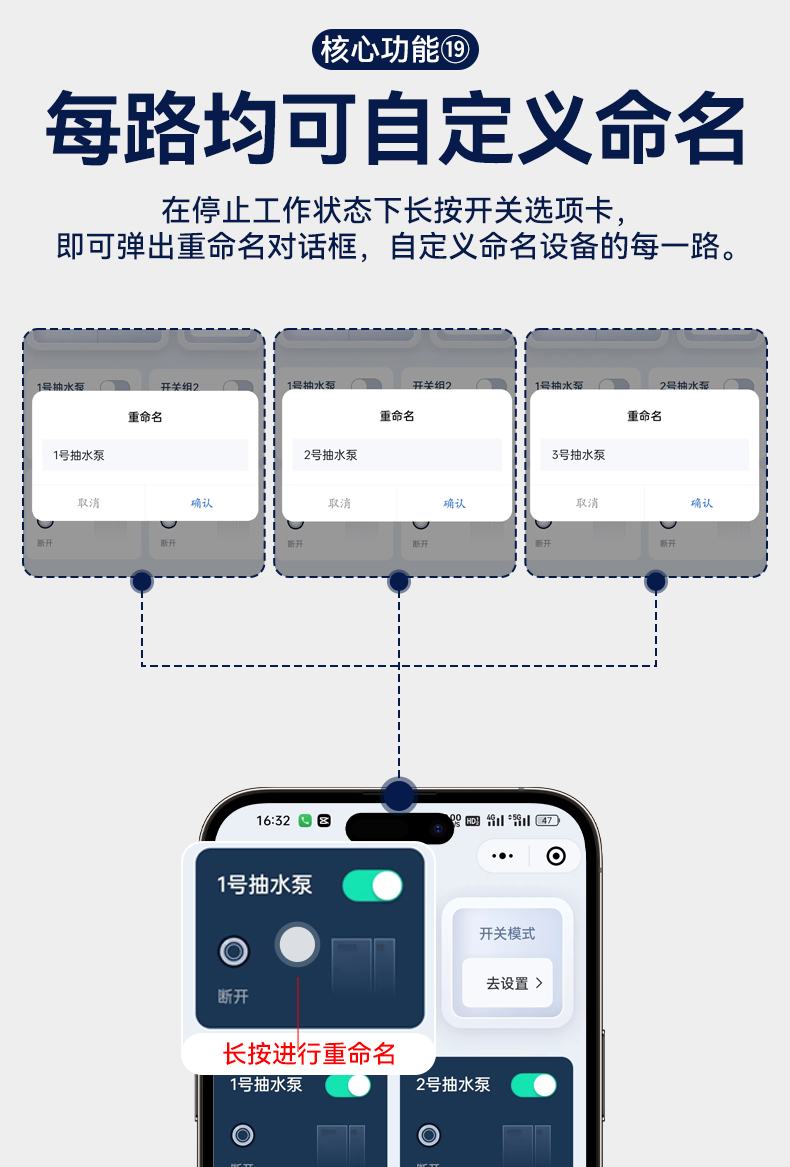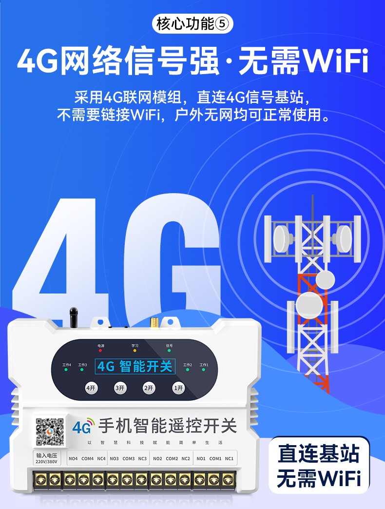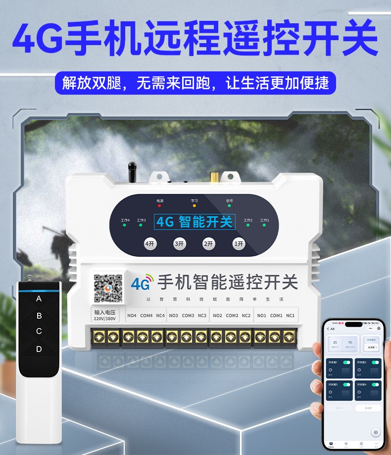 4G遠程控制開關(YS-A8) 產品規格 功能特點 資料下載 4G遠程控制開關(YS-A8)無需流量、無需插卡 、無需WIFI手機小程序控制定時開關:云端定時 、本地定時、 倒計時多人控制斷電提醒 +信息推送狀態檢測三種工作模式自動切換:點動模式 、互鎖模式 、自鎖模式工作電壓: 220v/380v (可選)應用場景:正反轉、水泵、啟動柜、變頻器 、魚塘增氧機、抽水泵、工業電機、燈具電器等